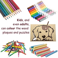 Optional Varathane coating - Varathane can protect plaques and puzzles, and allows them to be colored with markers, permanent or washable. Uncoated allows coloring them with pencil crayons, crayons, or even chalk, but not with markers due to bleeding.
